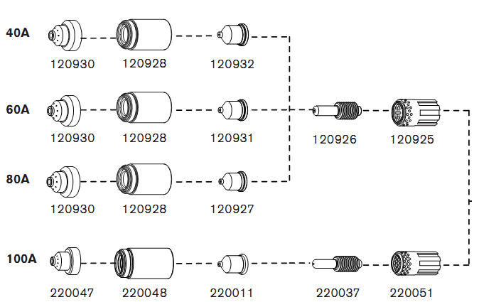Консумативите и резервните части са висококачествени продукти, произведени в ЕС, съвместими с Hypertherm®, Cebora®, Kjellberg®, ESAB®, SAF® и Thermal Dynamics®. ЯНСО не е упълномощен дистрибутор на изброените производители. Оригиналните части са обозначени с OEM.